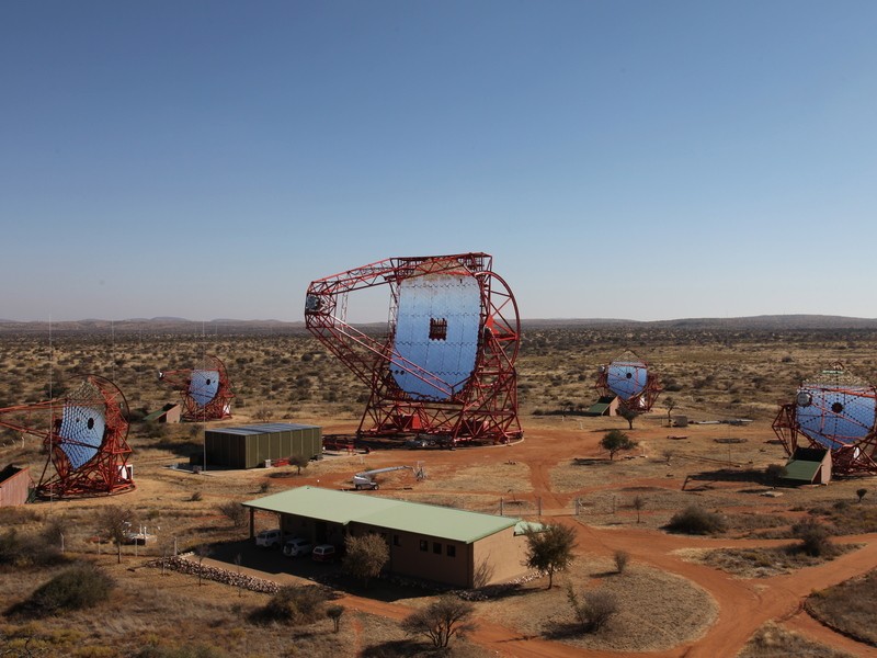 Weltgrößtes Tscherenkow-Teleskop H.E.S.S. II sah heute sein erstes Licht Das Gamma-Auge in Namibia hat erheblich an Sehschärfe gewonnen: Das neue Teleskop H.E.S.S. II besitzt einen 28-Meter-Spiegel und ergänzt seit heute das aus vier 12-Meter-Spiegeln bestehende H.E.S.S.-Observatorium (High Energy Stereoscopic System). Das größte jemals gebaute Tscherenkow-Teleskop wird die energiereichsten und extremsten Phänomene im Universum im sehr hochenergetischen Gammalicht beobachten. Von dem Instrument nahe des Gamsbergs versprechen sich die Forscher ein tieferes Verständnis bekannter hochenergetischer kosmischer Strahlungsquellen wie supermassiver schwarzer Löcher, Pulsare und Supernovae. Das neue Teleskop wiegt fast 600 Tonnen, sein 28-Meter-Spiegel entspricht der Fläche von zwei Tennisplätzen. Am 26. Juli um 0:43 Uhr MEZ hat es ,,erstes Licht" gesehen und Bilder von atmosphärischen Teilchenschauern aufgenommen, die von kosmischen Gammastrahlen oder von kosmischer Strahlung erzeugt werden.