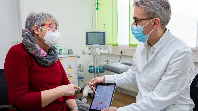 Martin Dusch mit Schmerz-Patientin Dagmar Huth. Copyright: Karin Kaiser/MHH