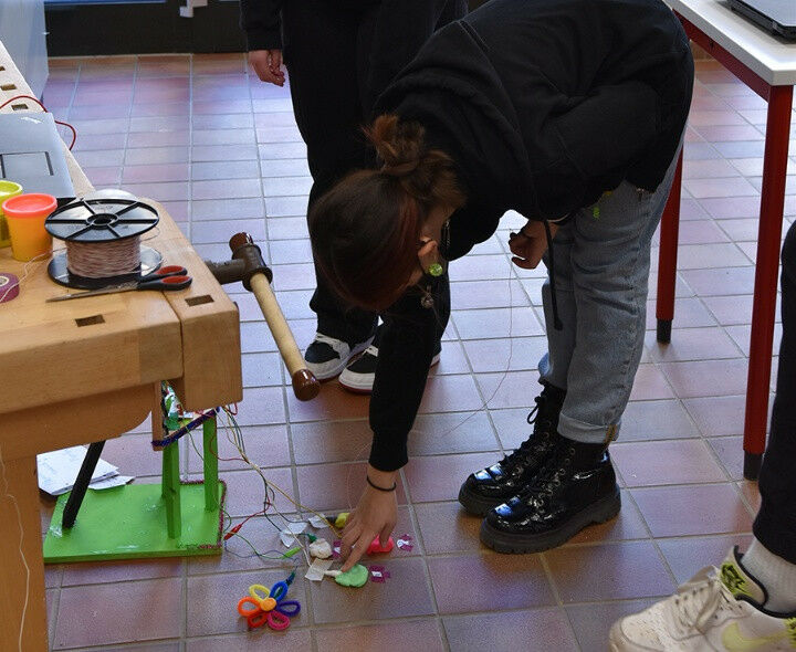 The therapy devices were developed using everyday materials. Photo: IJF - The initiative "Junge Forscher*innen" is starting a new project at grammar schools in the Stuttgart region. The workshops are run by students of the University of Stuttgart. [Picture: IJF] "How can you support people in their recovery using computer-aided physiotherapy?" This is the key question of the new project days "HelpIT", which are conducted for the first time in the Stuttgart region by the Initiative Junge Forscherinnen und Forscher ("Young Researchers Initiative", IJF). The initiative started with the Mädchengymnasium St. Agnes ("St. Agnes Grammar School for Girls"). There, girls of the eighth grade participated in the project days, which took place in December and January. "It's particularly important to us that there are many events and workshops offered in the STEM subjects," says Julian Pfab, who is a teacher at St. Agnes.