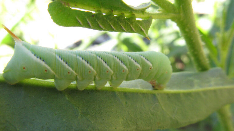 Raupe des Tabakschwärmers Foto: Pia Backmann