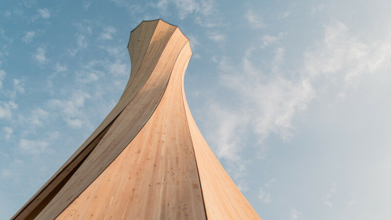 "A paradigm shift in timber construction", is how experts describe the roughly 14-meter high Urbach Tower, which was built by the Institute for Computational Design and Construction (ICD) and the Institute of Building Structures and Structural Design (ITKE) at the University of Stuttgart. The unique construction in Urbach is one of 16 showpieces at the Remstal Garden Show 2019. The tower is the first building in the world with a supporting wooden structure made from self-forming timber components. Curved or bent wood gives a construction a sense of uniqueness. This accentuates the Urbach Tower in particular, which is made from self-forming timber. The tower's striking shape, 14 meters high and four meters in diameter, was created using a brand-new self-forming process for the intricately curved components. In contrast to the very elaborate and energy-intensive forming processes currently used which require heavy pressing tools, the material forms by itself.