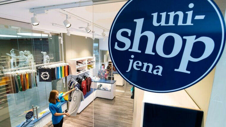 Blick in den neugestalteten Uni-Shop im Campusgebäude der Universität Jena. Foto: Jens Meyer (Universität Jena)