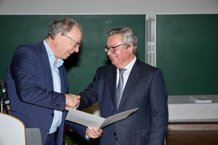 Prof. Oliver Riedel, Dekan der Fakultät für Konstruktions-, Produktionsund Fahrzeugtechnik der Universität Stuttgart, betonte in seiner Laudatio, dass Fischer Verantwortung übernehme und lebe - in und für Wirtschaft, Wissenschaft und Gesellschaft. Er setze konsequent auf Innovationen, fördere in seinem Unternehmen interdisziplinäres Arbeiten, sei selbst an 38 Patentschriften beteiligt und unterstütze den Erfolg der Universität Stuttgart, etwa über Forschungsvorhaben, Stiftungsprofessuren und Preise.