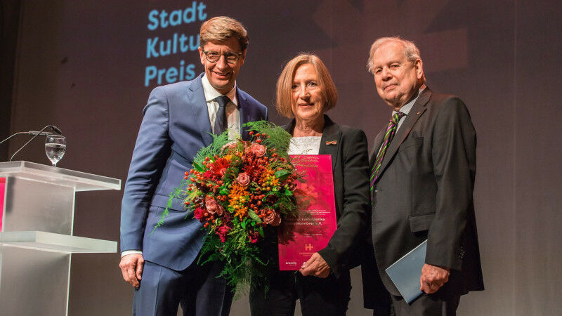 2018, Auszeichnung des Vereins für krebskranke Kinder Hannover e.V. mit dem Sonderpreis für herausragendes bürgerschaftliches Engagement des Freundeskreises Hannover. Bild von links: Matthias Herter, Bärbel Dütemeyer, Reinhard Scheibe. Copyright: Stadtkulturpreis 2018