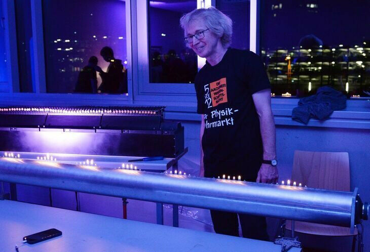 Morgenstern: We are sticking with the physics fair concept. So, once again, we will have flame experiments, high-voltage experiments, acoustic experiments, mechanical experiments, experiments with the phyphox app, and experiments to detect high-energy particles in the atmosphere.